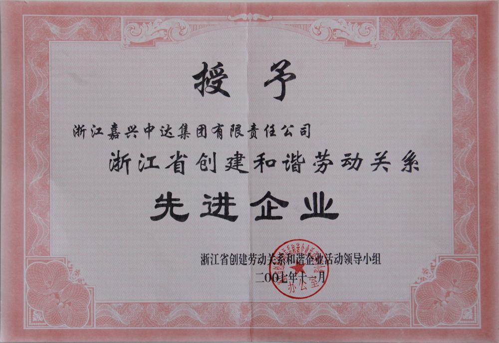 近幾十年來,中達集團及其子公司先后獲得縣級以上榮譽300多項,其中包括“國家高新技術(shù)企業(yè)”“全國模范職工之家”“全國廠務(wù)公開民主管理示范單位”“浙江省五一勞動獎狀獲得者企業(yè)”“浙江省文明單位”“浙江省黨建強、發(fā)展強先進企業(yè)”“浙江省企業(yè)文化建設(shè)示范單位”“浙江省關(guān)心下一代先進集體”“嘉興市廉政文化示范點”“嘉興市五好基層關(guān)工委”“嘉興最具有社會責(zé)任感企業(yè)”等榮譽稱號。
