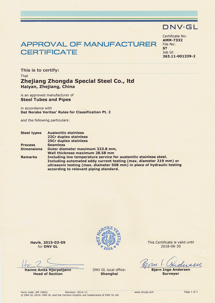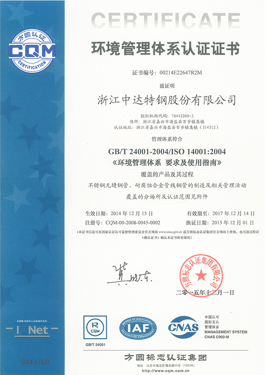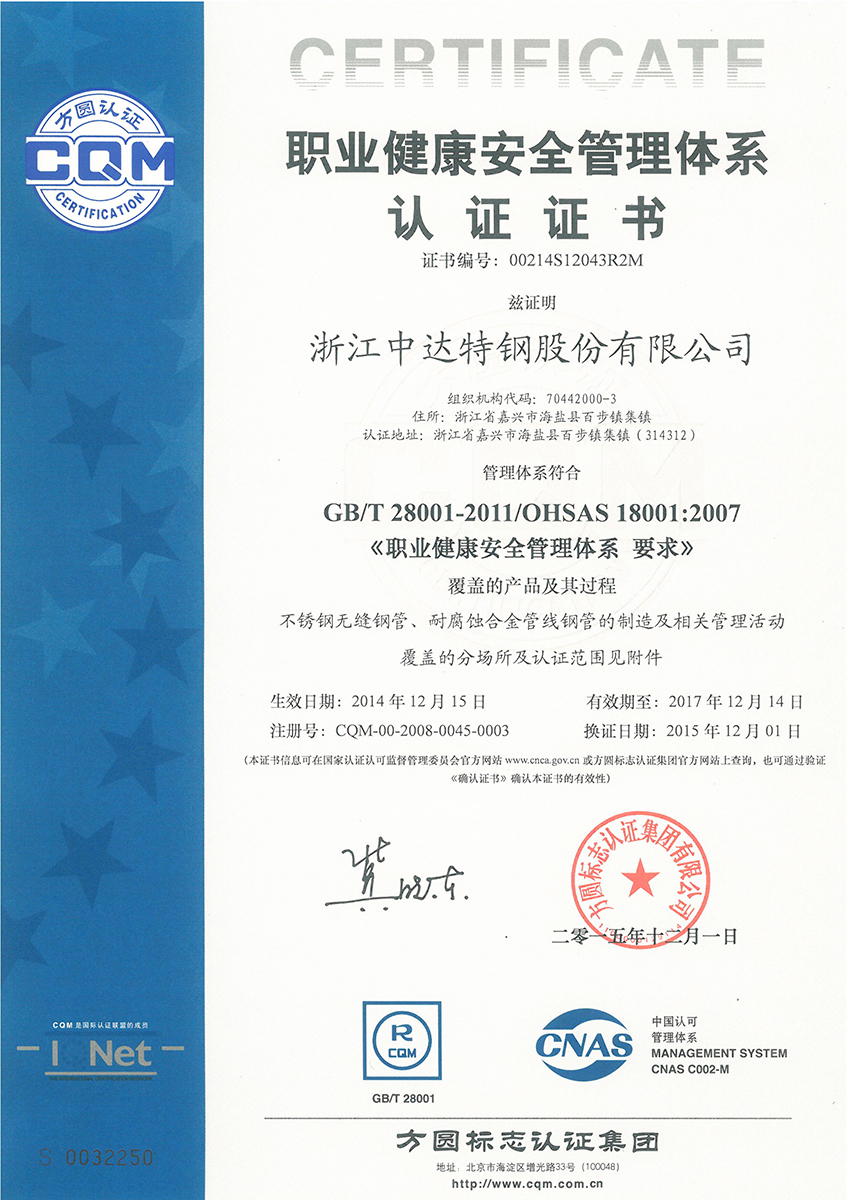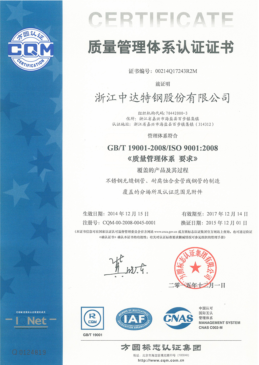 中達(dá)新材是國家火炬計劃重點高新技術(shù)企業(yè),是2021年度浙江省首批“專精特新”企業(yè)。產(chǎn)品可廣泛應(yīng)用于石油化工、煤化工、能源化工、精細(xì)化工、核電、軍工、半導(dǎo)體、光伏、氫能源、生物醫(yī)藥、船舶、海洋工程等領(lǐng)域,產(chǎn)品主要包括奧氏體不銹鋼管、雙相不銹鋼管、鎳基合金管、鐵素體管等。