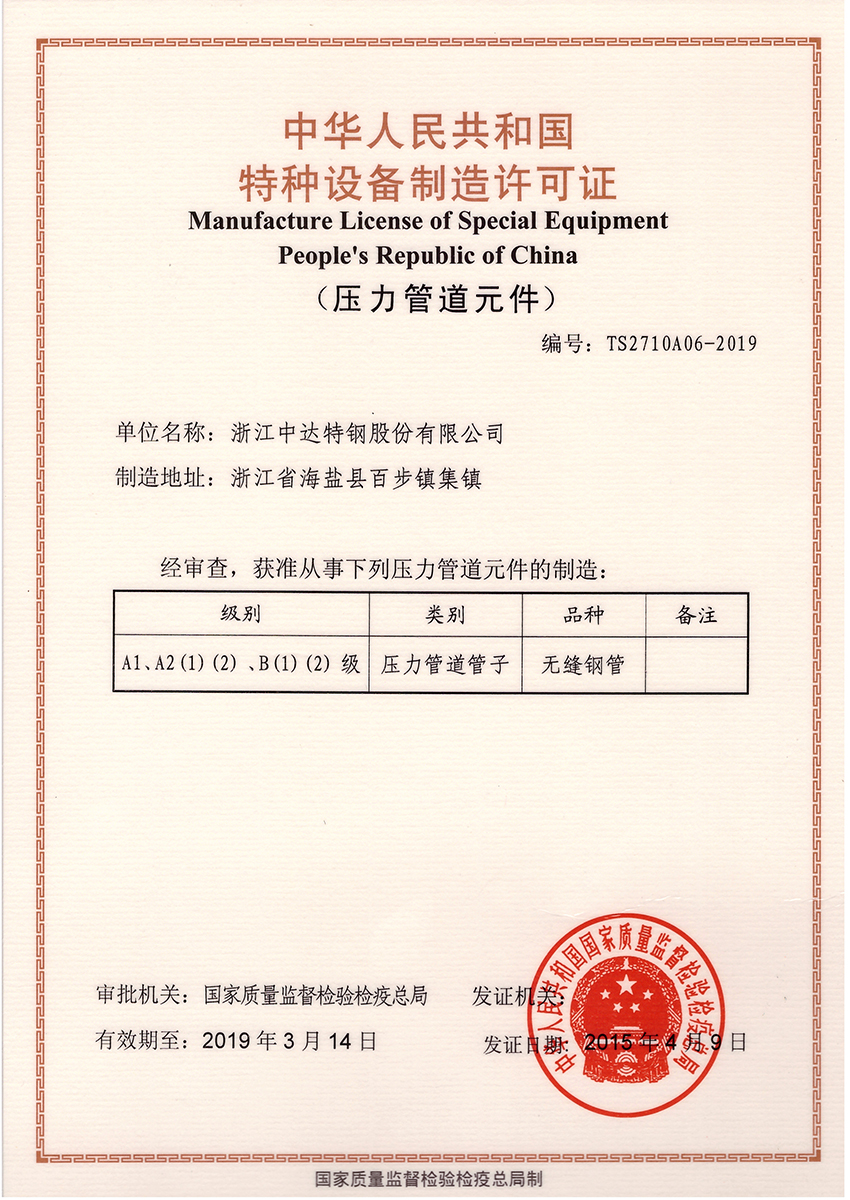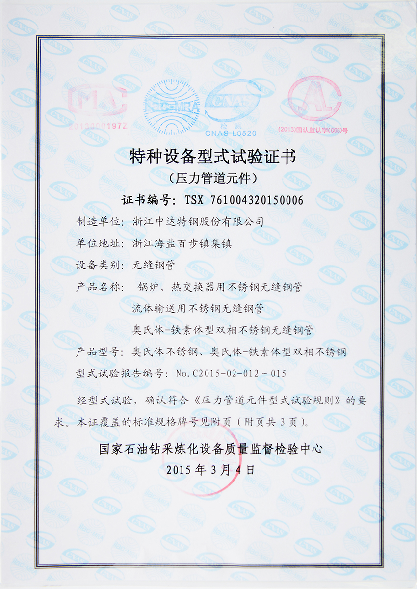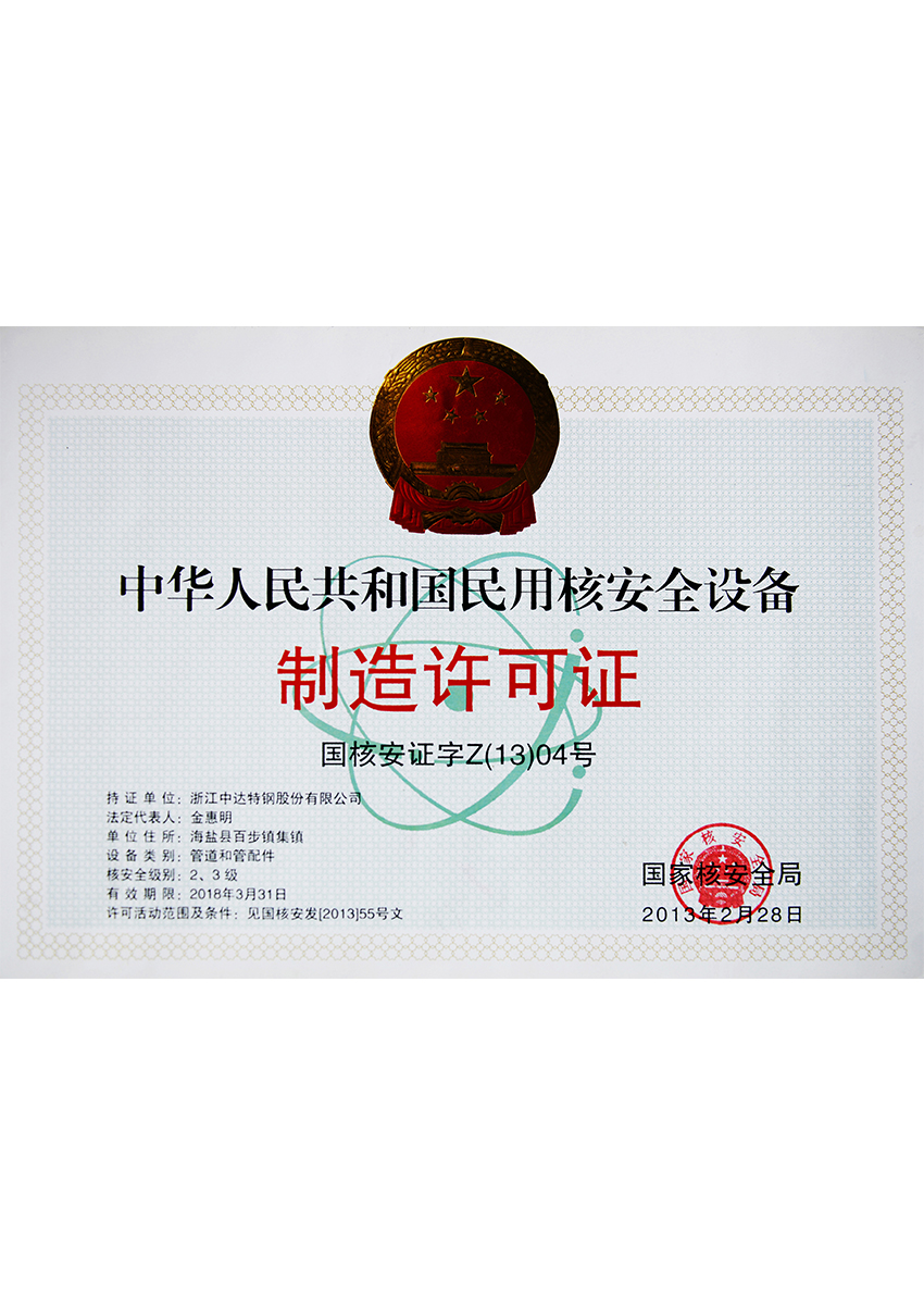 公司取得了民用核安全設(shè)備制造許可證(嘉興市第一家),質(zhì)量/環(huán)境/安全/能源四體系認(rèn)證證書,美國石油協(xié)會API會標(biāo)認(rèn)證、歐盟承壓設(shè)備指令認(rèn)證、實驗室認(rèn)可CNAS證書以及中國CCS、英國勞氏LR、美國ABS、挪威DNV等六家船級社許可證。2013年獲嘉興市市長質(zhì)量獎,并先后獲評嘉興市科技創(chuàng)新領(lǐng)軍企業(yè)、省級企業(yè)研究院等。截止目前擁有專利43項,其中發(fā)明專利6項、實用新型29項、軟件著作權(quán)8項;有2項科技項目被列為省科技重大科研項目,2項產(chǎn)品通過嘉興市首臺套認(rèn)證,多項產(chǎn)品通過鑒定,參與了多項國標(biāo)、行標(biāo)及團(tuán)標(biāo)的編制。