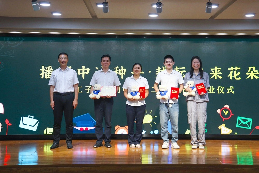 隨后孩子們依次上臺領(lǐng)取結(jié)業(yè)證書,與家人共同見證了這一值得紀(jì)念的時刻?;顒又羞€表彰了倪宸好、宋琪等兩位優(yōu)秀志愿者老師,金燁、姚利超、馮岳明、王林靜等四位黨工團(tuán)婦優(yōu)秀值班人員。
