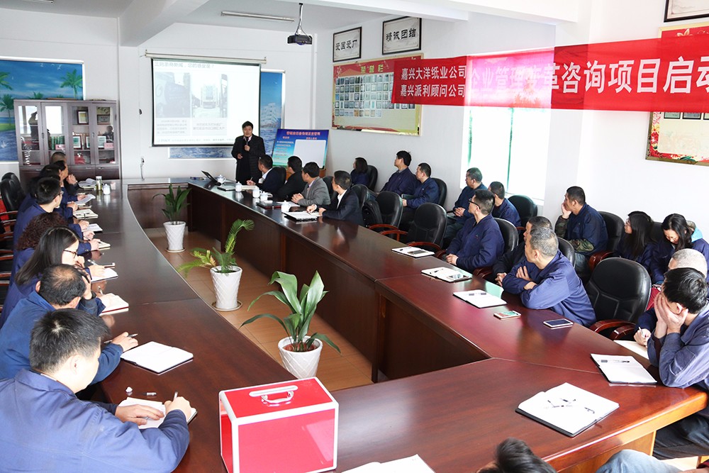 3月22日上午,大洋紙業(yè)企業(yè)管理變革咨詢項(xiàng)目啟動會在公司三樓會議室召開,公司全體中層以上干部參會。嘉興派利顧問團(tuán)隊出席會議。