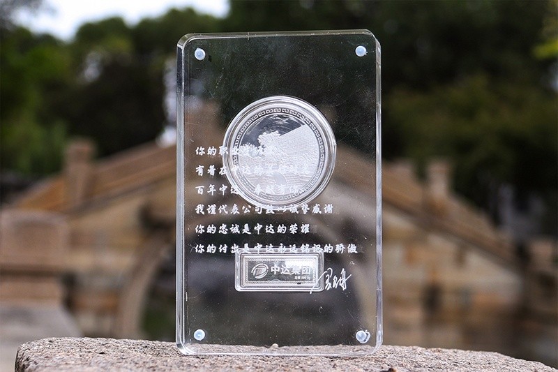 活動的最后,集團(tuán)為每一位到場的老員工頒發(fā)了純銀紀(jì)念章,并與金董合影留念。這塊紀(jì)念章的正面印有中達(dá)集團(tuán)LOGO、退休員工姓名,背面印有中達(dá)集團(tuán)辦公區(qū)的兼善橋。“窮者獨善其身,達(dá)者兼善天下”是中達(dá)所崇慕之“達(dá)道”的含義,中達(dá)的企業(yè)發(fā)展,便是為了回報社會,去善待員工、善待客戶、兼善社會。