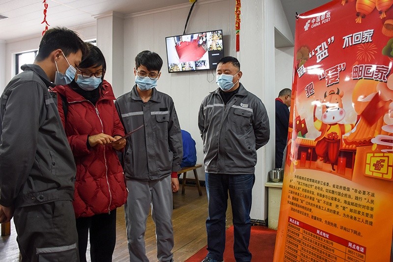 為積極響應(yīng)疫情期間浙江省委、省政府提倡“非必要不返鄉(xiāng)”、“在工作地過節(jié)”的號(hào)召。海鹽郵政分公司與縣工商聯(lián)一起走進(jìn)企業(yè),聯(lián)合組織開展了“留鹽不回家,把愛郵回家”主題活動(dòng)。