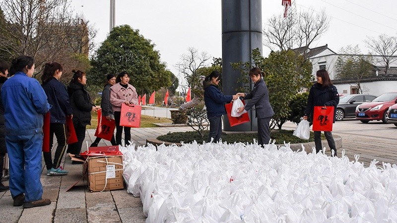 在新春佳節(jié)到來之際,海鹽縣婦聯(lián)、海鹽縣女企協(xié)聯(lián)合推出“愛心直通車”活動(dòng),為在鹽新居民員工送去關(guān)心關(guān)愛物資。2月8日,“愛心直通車”來到中達(dá)集團(tuán),為中達(dá)集團(tuán)的留“鹽”過年員工送上了“愛心大禮包”共計(jì)300余份,主要為福袋和生活必需品,“福袋”包含了對(duì)聯(lián)、福字、紅包等。