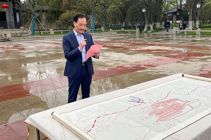 3月24日上午,由浙商研究院、浙商博物館組織的“致敬建黨100周年浙商百人百句頌詞征集”啟動(dòng)儀式在南湖畔舉行。中達(dá)集團(tuán)董事長(zhǎng)金惠明受邀參加,并在4.6米長(zhǎng)(象征從嘉興南湖中共一大會(huì)址到位于溫州平陽(yáng)鳳臥鎮(zhèn)的中共浙江省一大會(huì)址是460公里)的絲綢長(zhǎng)卷上莊重寫(xiě)下了慶祝建黨百年的祝福頌詞——慶百年,感黨恩,倡共富,爭(zhēng)先鋒。