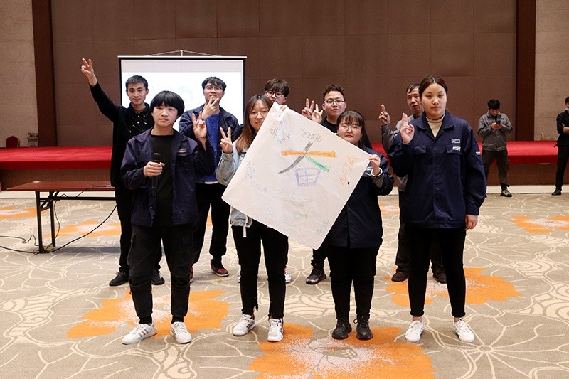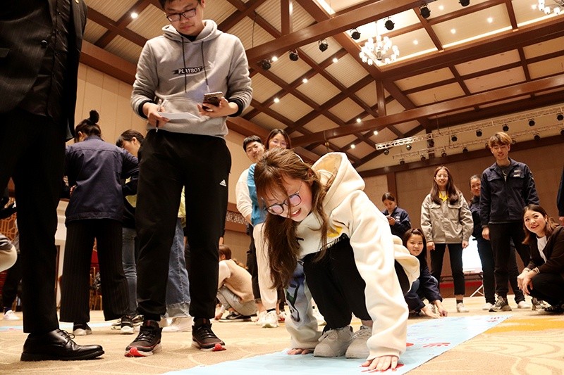 隨后,80位新員工移步中達(dá)宴會(huì)廳,在人力資源部主任吳雪艷的帶領(lǐng)下,通過(guò)破冰小游戲組成了8支隊(duì)伍。