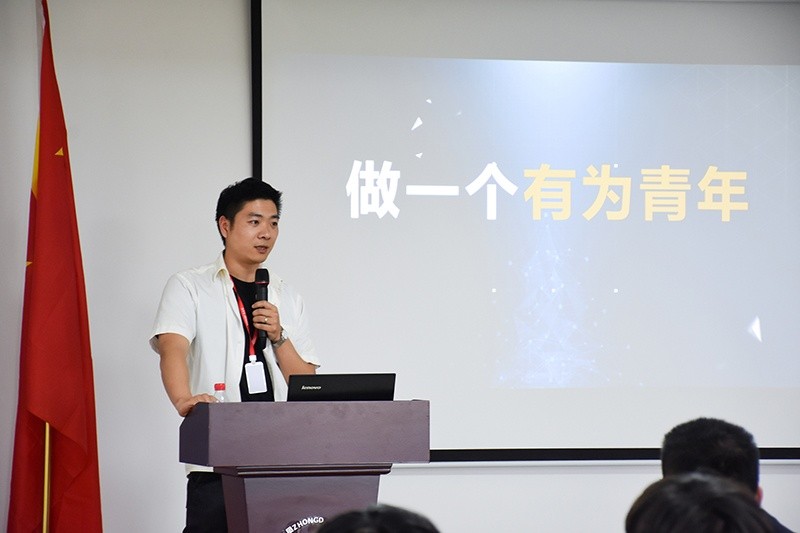 中達貨架黨支部組織委員張偉發(fā)表了感言,他希望廣大青年們積極投入到公司建設(shè)中來,充分發(fā)揮自己年輕人的力量,勇于創(chuàng)新,做一名有為青年。