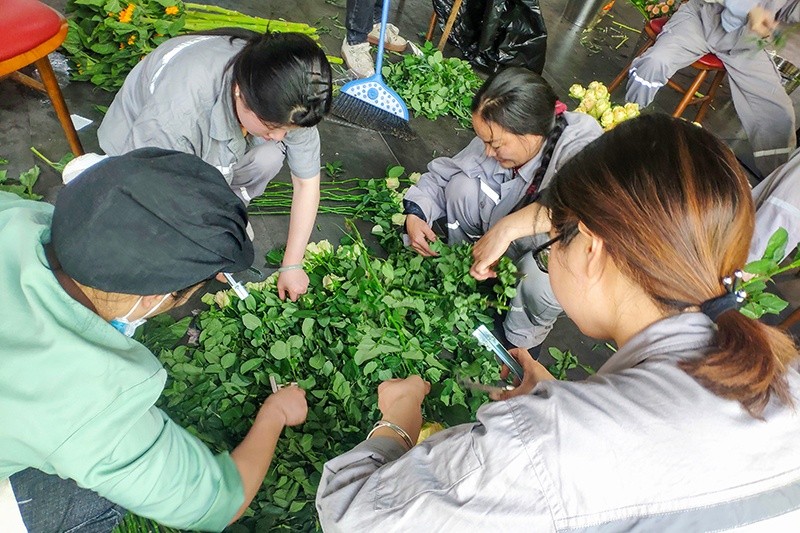 5月9日,花材如期而至。從云南空運過來的花材,經(jīng)過了2-3天的長途跋涉,均處在脫水的狀態(tài),園藝社的小伙伴們在插花老師的指導(dǎo)下,一起對花材進行整理、醒花、養(yǎng)花。