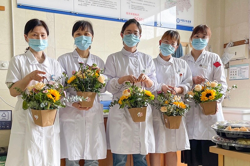 上午10點,一份份精美的甜品、水果拼盤以及絢麗的花籃帶著恒洋人深深的祝福來到了沈蕩康寧醫(yī)院護士小姐姐們的手中。