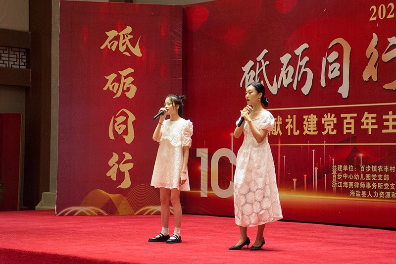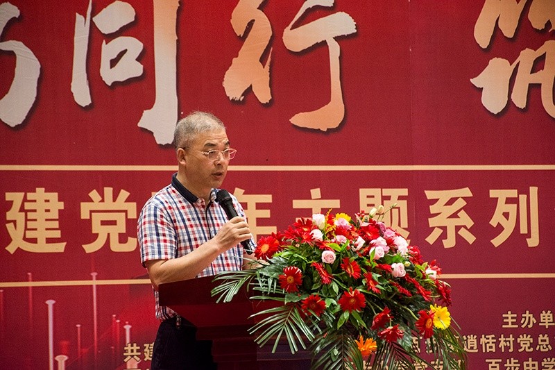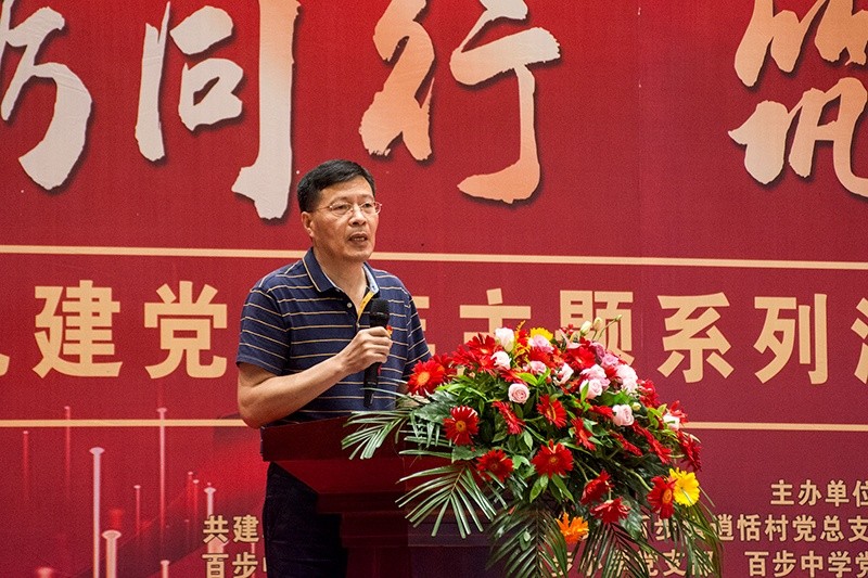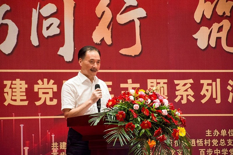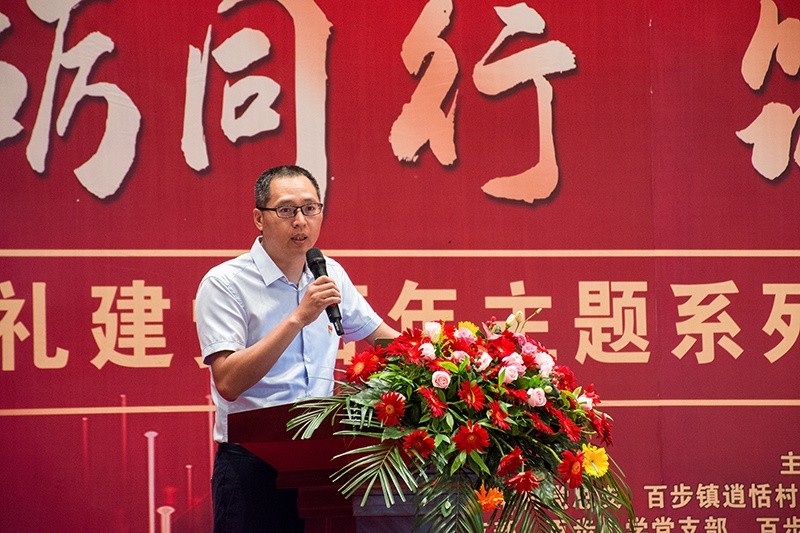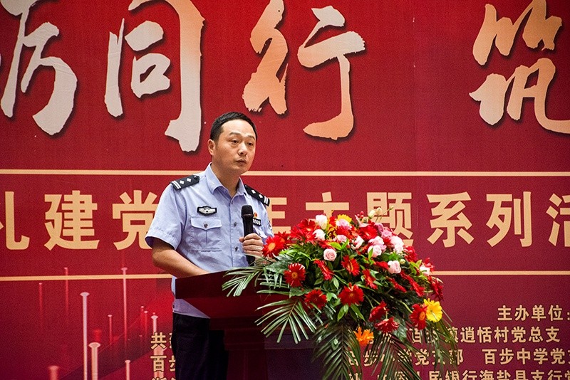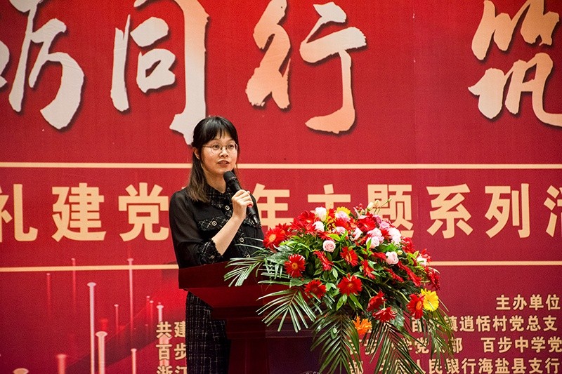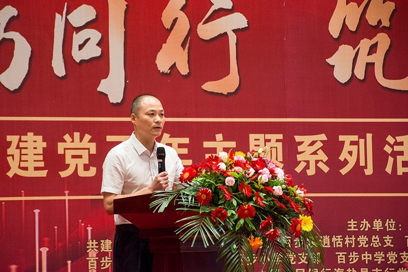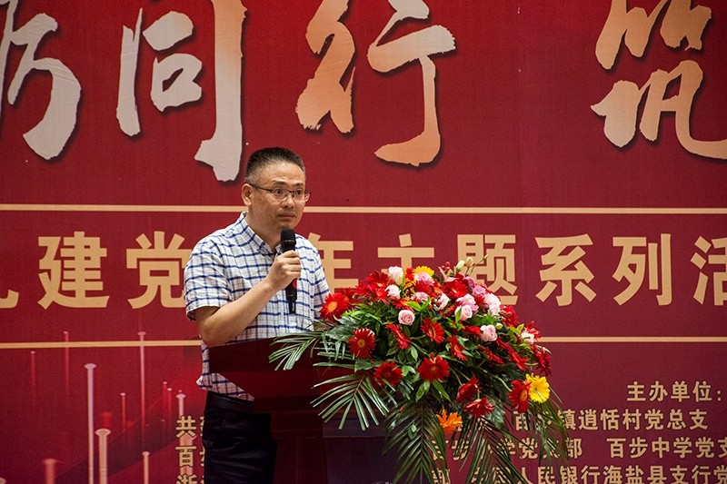 大會最后,百步派出所黨支部副書記、政治教導(dǎo)員 干凱軍,百步中學(xué)黨支部書記 、校長  范兢,百聯(lián)村黨委書記 葉吳良,中國人民銀行海鹽縣支行副行長、黨支部副書記 沈明法,海鹽縣醫(yī)療保障局黨組書記、副局長  楊林峰,浙江省榮軍醫(yī)院黨委委員、紀(jì)委書記 楊雪明,中達(dá)集團(tuán)黨委書記、董事長  金惠明上臺致辭,紛紛對本次獻(xiàn)禮建黨百年主題系列活動的成功舉辦表示祝賀。