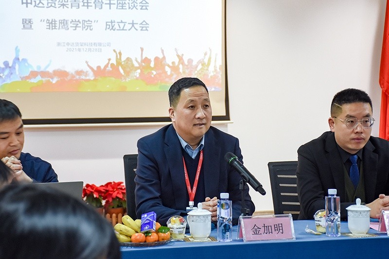 為關(guān)心關(guān)愛(ài)青年員工成長(zhǎng),激發(fā)青年骨干斗志,促進(jìn)中達(dá)貨架繁榮發(fā)展,實(shí)現(xiàn)百年中達(dá)的夢(mèng)想,12月28日下午,中達(dá)貨架開(kāi)展了以“凝鑄匠心,共逐夢(mèng)想”為主題的青年骨干座談會(huì),并舉行了“雛鷹學(xué)院”成立儀式。本次座談會(huì)由中達(dá)貨架總經(jīng)理助理張偉主持,中達(dá)貨架黨支部書(shū)記、總經(jīng)理金加明,中達(dá)集團(tuán)董事長(zhǎng)秘書(shū)、團(tuán)委書(shū)記、宣傳部主任董飛,中達(dá)貨架副總經(jīng)理牟冬冬,好仕萊家居總經(jīng)理周中金,中和化學(xué)總經(jīng)理沈葉飛等領(lǐng)導(dǎo)出席會(huì)議,中達(dá)貨架60余名35周歲以下的青年員工共同參加了本次座談。