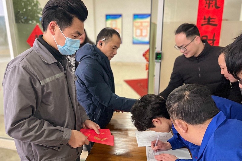 2月7日,美克斯機械正式開工。清晨,公司相關負責人及人事行政部人員手拿開門紅包,喜迎員工,一聲聲“新年好!”道出了大家的真摯祝福。節(jié)前,美克斯機械在2022年1月新增訂單2650萬元,目前訂單量已排產至5月,為達成全年銷售目標奠定良好基礎。因此,為保質保量按時完成訂單,公司在各大平臺發(fā)布了招聘信息,對內也設立了“老帶新”激勵政策——對成功推薦新普工或熟練工的老員工給予現(xiàn)金獎勵。