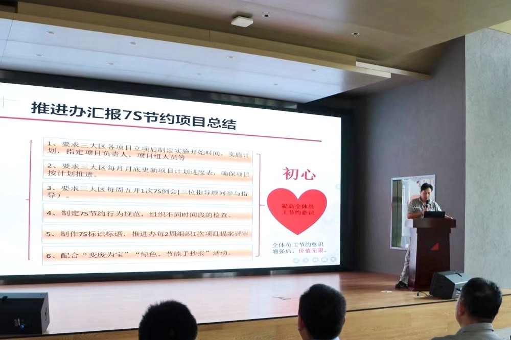 隨后,7S節(jié)約管理項(xiàng)目三大區(qū)負(fù)責(zé)人分別匯報(bào)了半年來的工作開展情況和經(jīng)驗(yàn)總結(jié),并分享了后期持續(xù)實(shí)施的計(jì)劃等。7S節(jié)約管理項(xiàng)目顧問胡光相從宏觀層面分析當(dāng)前形勢(shì)作引入點(diǎn),闡述了推行7S的必要性,并鼓勵(lì)大家堅(jiān)定信心和決定,用實(shí)際行動(dòng)繼續(xù)落實(shí)7S管理。