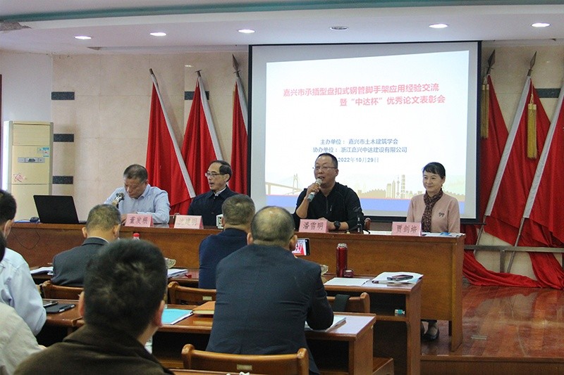 會議宣貫了《嘉興市建設(shè)局關(guān)于印發(fā)嘉興市建設(shè)工程承插型盤扣式鋼管腳手架施工安全實施細則的通知》,隨后進行專業(yè)技術(shù)交流活動。