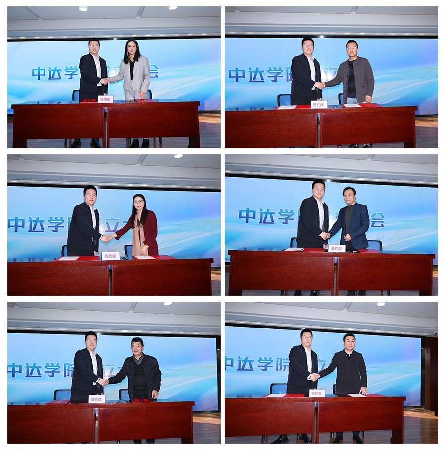 浙江大學(xué)國際聯(lián)合商學(xué)院、嘉興學(xué)院、嘉興南湖學(xué)院、海鹽縣理工學(xué)校、浙江廣播電視大學(xué)海鹽學(xué)院、派利靈犀學(xué)院的代表分別與中達聯(lián)合控股集團簽訂合作協(xié)議。