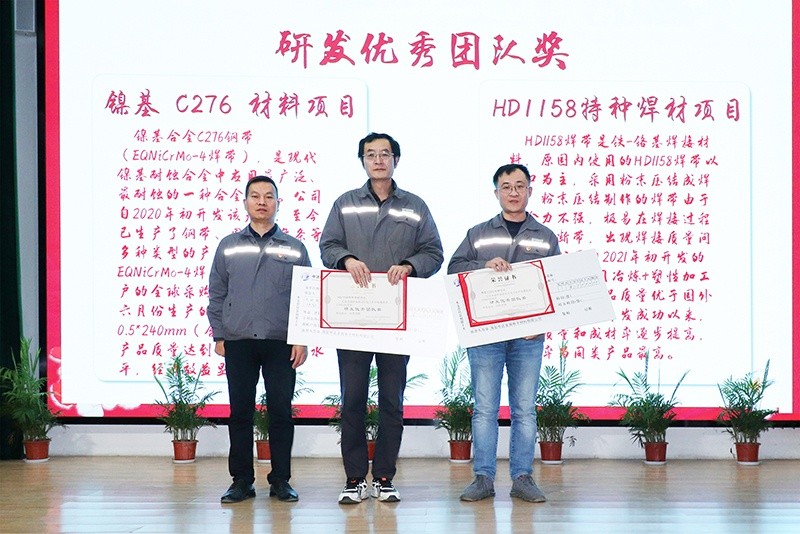 “鎳基 C276 材料項(xiàng)目團(tuán)隊(duì)”、“HD1158特種焊材項(xiàng)目團(tuán)隊(duì)” 榮獲“研發(fā)優(yōu)秀團(tuán)隊(duì)獎(jiǎng)”