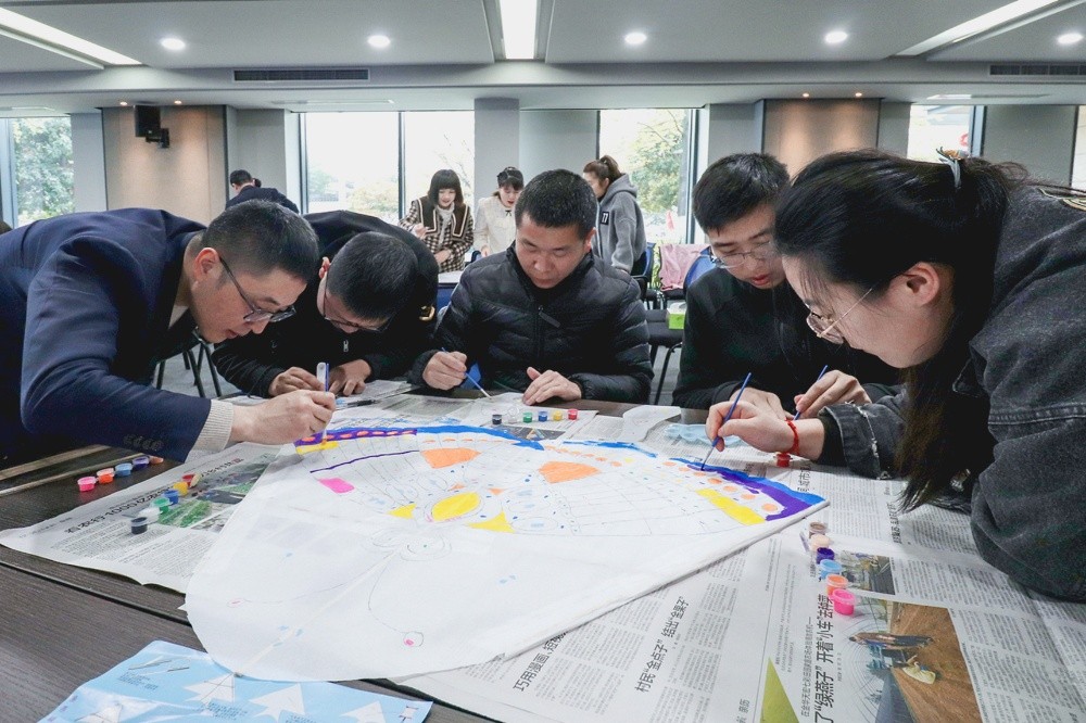 3月25日上午,風(fēng)箏的最終上色過程在集團(tuán)一樓會(huì)議廳如火如荼地展開集團(tuán)總經(jīng)理吳立東,副總經(jīng)理金王琴、湯磊應(yīng)邀來到現(xiàn)場(chǎng),作為評(píng)委參與活動(dòng)。員工都展現(xiàn)了自己超凡脫俗的繪畫功底,經(jīng)過兩個(gè)小時(shí)的努力,十只別具一格的風(fēng)箏誕生了。