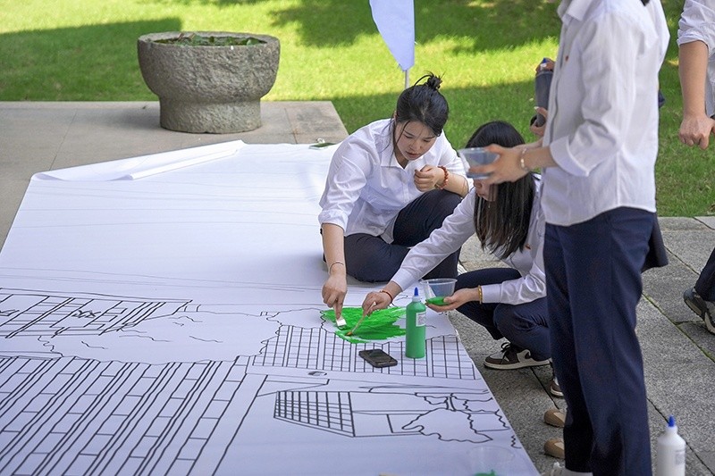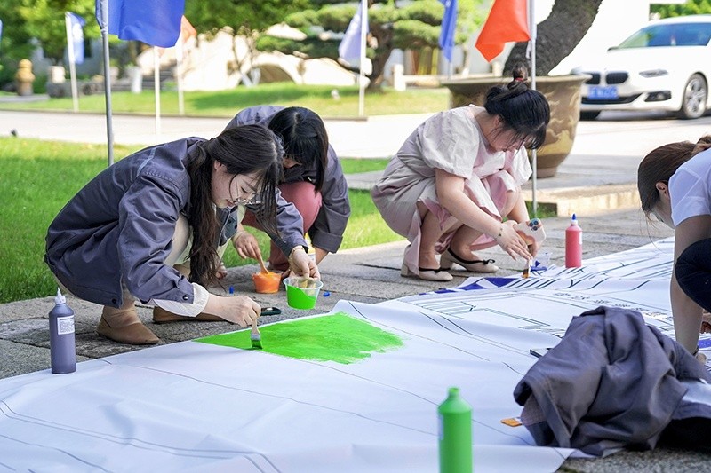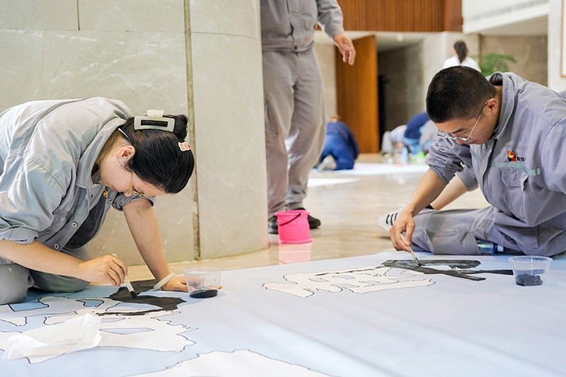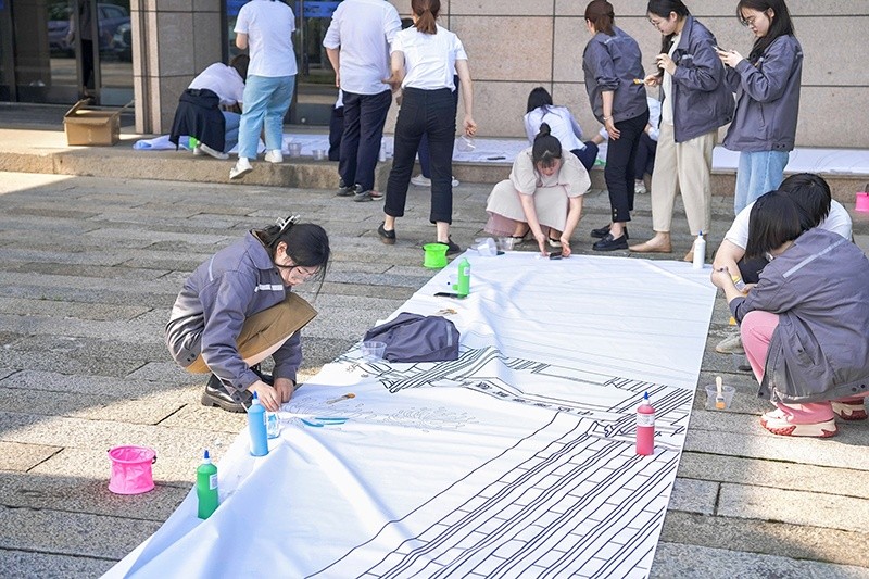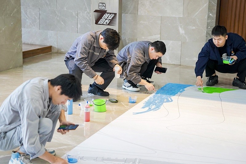 隨后,“擘畫藍圖啟征程,乘風破浪開新局”共繪納斯卡巨畫活動閃亮登場,大家通過分組合作的形式,共同在畫布上繪制。所有團隊要用僅有的畫筆和顏料,揮灑藝術才能,巨畫被分成8條,各部分由不同的團隊負責完成,最終完成畫布拼接并進行展示。正值公司60周年,集團團委特舉辦此項活動,一方面是為了讓平時辛勤工作的青年員工廣泛交友、放松自我,更重要的是通過團建活動進一步增強青年們的合作、溝通與協(xié)調(diào)能力,增強團隊的凝聚力和向心力。