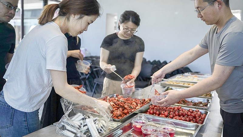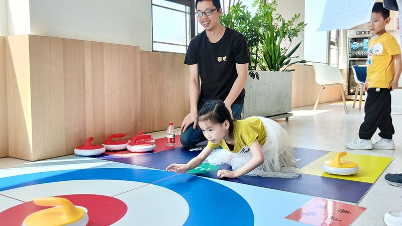 本次活動共設(shè)套圈、肖像畫、釣龍蝦、扔沙包、乒乓進杯和旱地冰壺六大項目,大朋友和小朋友們一起歡樂游戲、默契十足。公司里回蕩著加油聲、歡笑聲,孩子們興趣盎然,家長們也樂在其中。玩累了,大家便坐下來享受美食,享受獨屬親子間的溫馨時光。