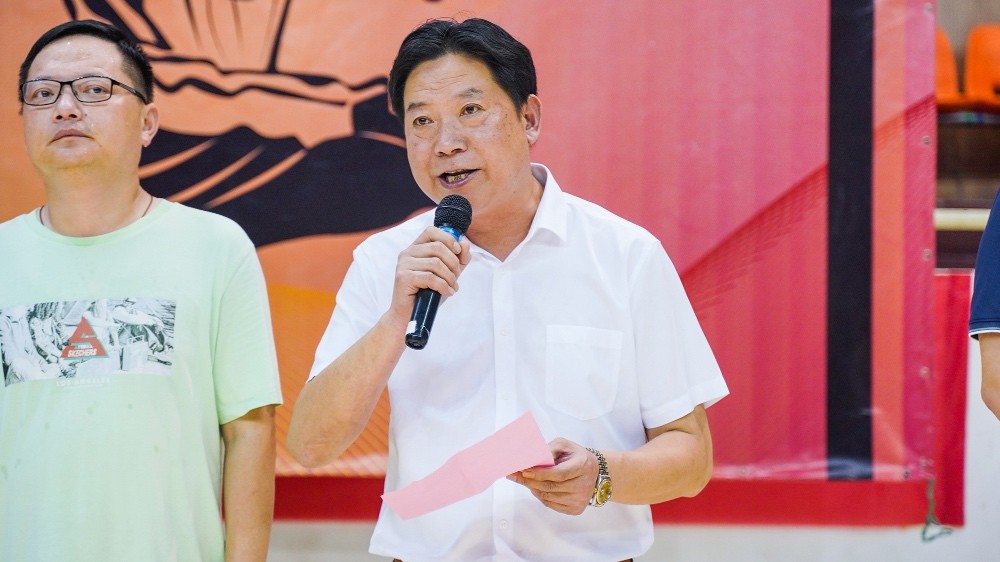 在裁判員代表、運(yùn)動員代表宣誓發(fā)言,海鹽縣籃球協(xié)會秘書長杜衛(wèi)江宣布賽事正式開幕,全場一片沸騰。參賽隊(duì)員們憑借著對籃球的摯愛與運(yùn)動的熱情,將在賽場上展開激烈、精彩的角逐。