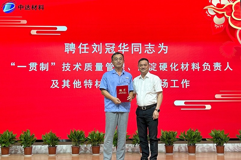 會議第三項,舉行“一貫制”質(zhì)量管理項目啟動儀式。聘任材料專家劉冠華為“一貫制”質(zhì)量管理、沉淀硬化材料負責(zé)人。中達材料要以工藝、技術(shù)規(guī)范“一貫制”為抓手;以培養(yǎng)員工習(xí)慣養(yǎng)成和行為規(guī)范為目的;在現(xiàn)有體制下,不斷提高質(zhì)量管理水平,向管理要質(zhì)量、出效益。