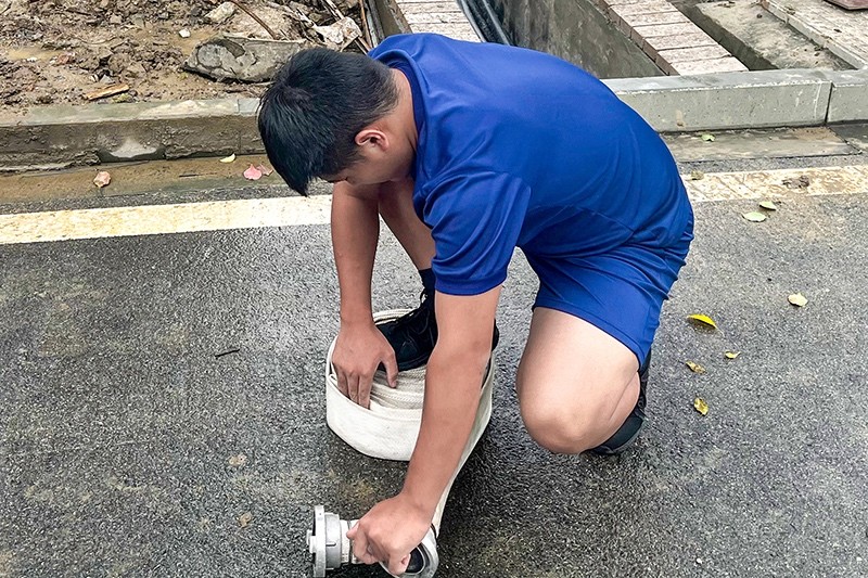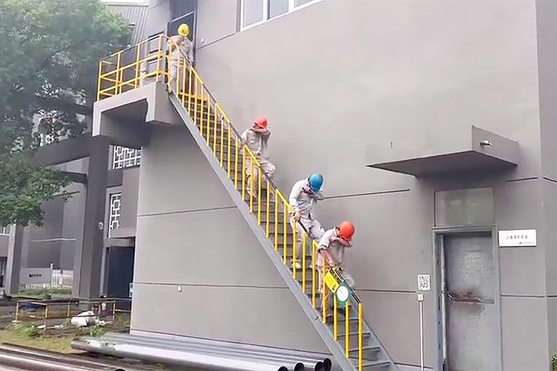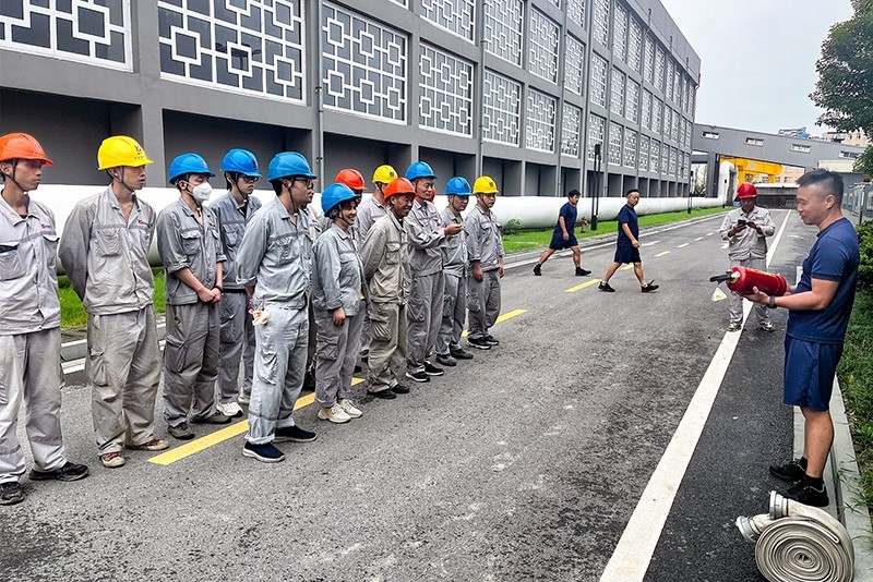 在整個(gè)疏散過(guò)程中,員工們不擁擠、不慌張,有序到達(dá)指定地點(diǎn)。此外還模擬1#電吊處著火的情景,讓每個(gè)到場(chǎng)的員工都進(jìn)行一次消防帶的連接和滅火操作。