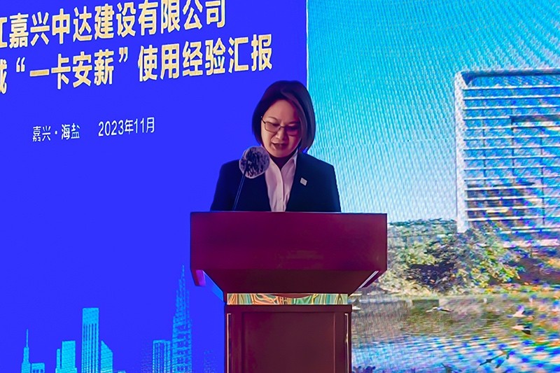 中達(dá)建設(shè)作為海鹽縣建設(shè)領(lǐng)域首家啟用“一卡安薪”的施工企業(yè),2022年10月就在南北湖徐灣區(qū)塊及開元森泊酒店項目試點使用了該系統(tǒng),并逐步推廣到各個項目,目前已推廣至10余個項目。會上,中達(dá)建設(shè)副總經(jīng)理明敏重點介紹了勞務(wù)工人在使用電子合同簽定、工薪發(fā)放查詢等功能的實操情況,同時針對建筑工人群體在系統(tǒng)推廣中遇到的問題和解決問題的方法案例進(jìn)行了經(jīng)驗交流。