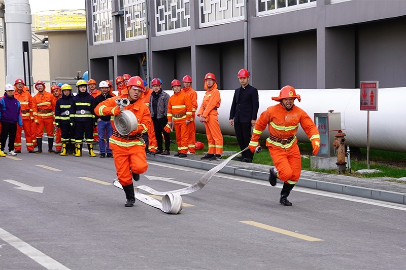 微型消防培訓后,恒洋熱電舉辦了消防技能比武競賽,來自各子公司的8支消防隊伍參加。本次競賽分為2大內容,分別是60米滅火及兩盤水帶連接出水,競賽由專職消防隊隊員現場教學示范后各組隊伍出場比賽。