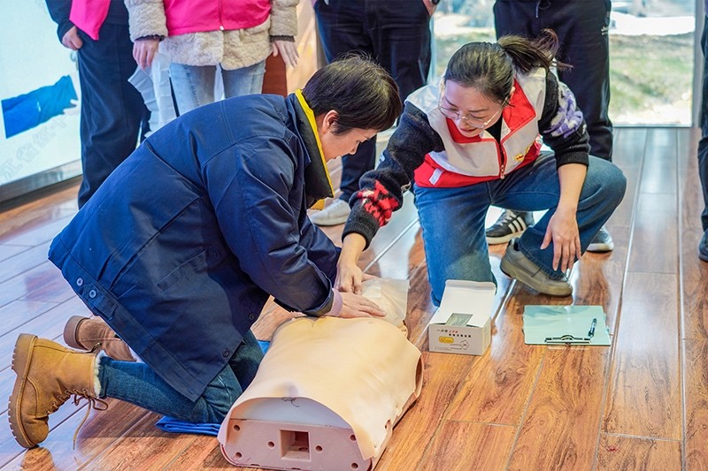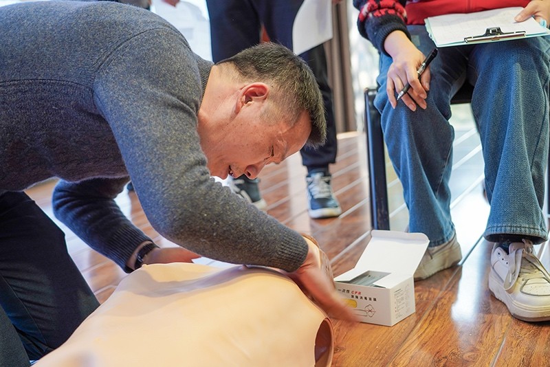 實(shí)操環(huán)節(jié),顧老師采用“模擬救助場(chǎng)景+示范急救方法+反復(fù)操作訓(xùn)練”的方法,耐心指導(dǎo)每位學(xué)員掌握心肺復(fù)蘇的技能,并一一糾正學(xué)員們?cè)诓僮鬟^(guò)程中出現(xiàn)的錯(cuò)誤。